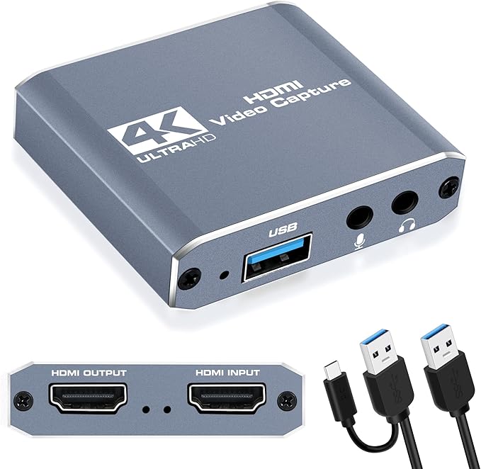 MOYOON 4K HDMI キャプチャーボード ゲームキャプチャー USB/Type-C 1080P 60fps HDMIループ出力、マイクオーディオミキシング ビデオキャプチャー ゲーム実況生配信 録画、ライブ会議に適用 1080P 60fps、switch 、PS5、OBS Studio対応 電源不要